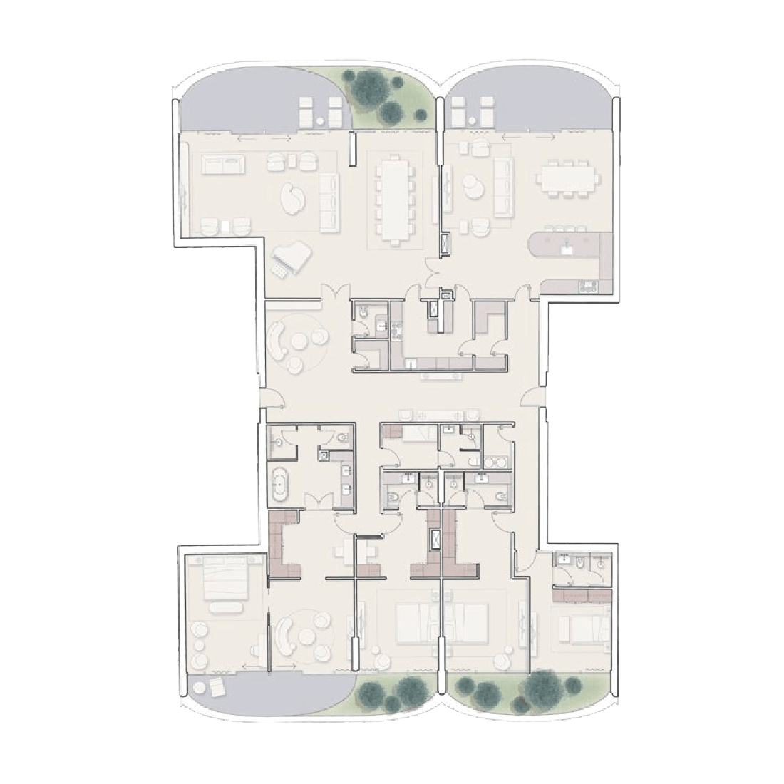 If you reside in a duplex, a penthouse or the 6-bedroom presidential suite, you can enjoy your own private swimming pool.